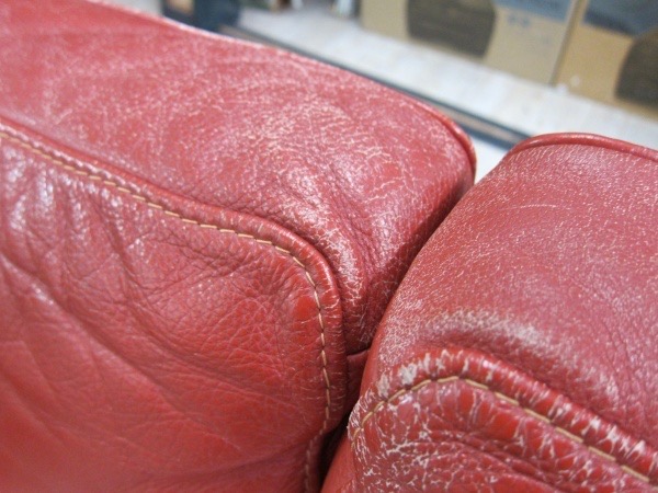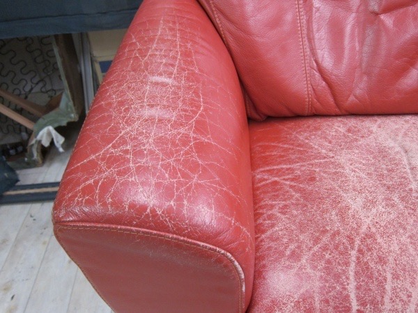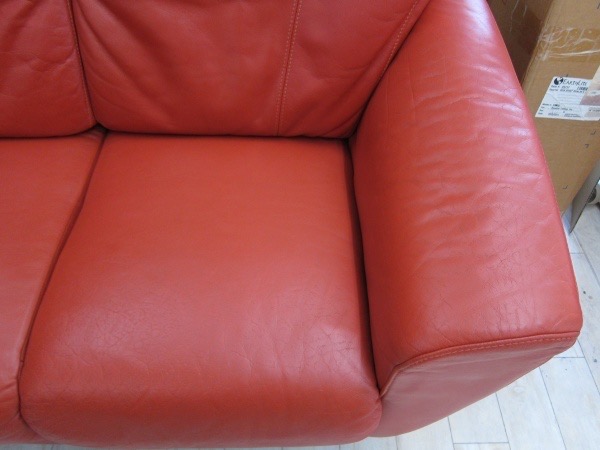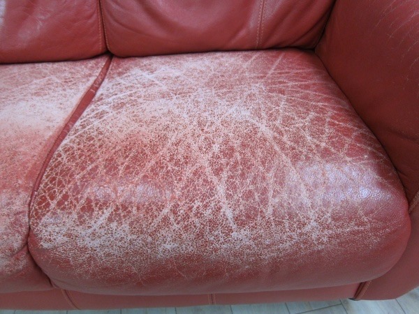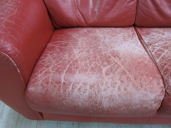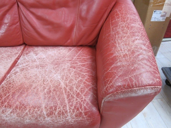長年のご使用により擦れ傷がかなり目立つソファです。